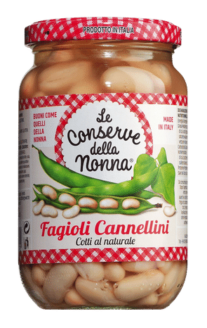 in Salzlake eingelegte, kleine, weiße Bohnen von weicher Konsistenz. Zusammen mit Thunfisch als tonno e fagioli, aber auch an Salaten als Beilage oder für Eintöpfe. Abtropfgewicht 220 Gramm.