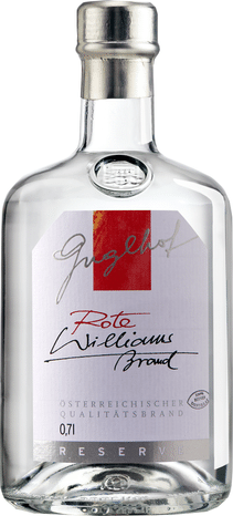 Die Rote Williams begeistert den Verköstiger mit einer klassischen Frucht, welche füllig in die Nase steigt. Der Gaumen wird von Aromen wie Birne, welche vielschichtig und mit viel Druck auftritt, überwältigt. Ein überaus eleganter Abgang, würdigt diese Sensation aus dem Hause Guglhof in Hallein.