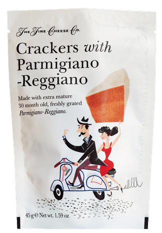 Über 30 Monate gereiften Parmigiano-Reggiano hat der Käse-Spezialist aus Bath in diesen Crackern verarbeitet. Ein Glas Rotwein bekräftigt die englisch-italienische Liaison.