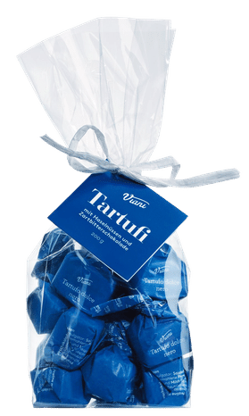 Diese Tartufo wird aus einem hohen Anteil an gehackten und gemahlenen Piemonteser Haselnüssen IGP und viel hochwertiger Kakaomasse hergestellt. Diese Zutaten verleihen dem Tartufino nero eine körnige und zugleich schmelzige Textur und eine angenehm ausgewogene Süße im Geschmack.14 Stück im durchsichtigen Geschenkbeutel.