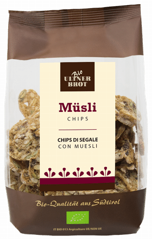 Müsli für unterwegs? Kein Problem mit den Müsli-Chips von Ultner Brot. Alle wichtigen Bestandteile: Sultaninen, Sonnenblumen- und Kürbiskerne, Haferflocken und Honig - in praktischen Chips zum handlichen Snack für Frühstück zum Mitnehmen!
