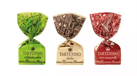 Gemischte Schokoladentrüffel: Tartufi al gianduja, pralinati und al pistacchio