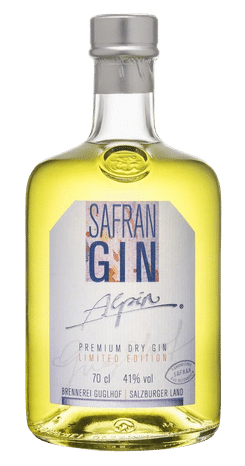 Hier vereint sich der GIN Alpin mit dem edelsten Gewürz der Welt. Der österreichische Safran aus dem Burgenland verleiht diesem Premium Gin vom Guglhof seinen unverkennbaren Charakter und die dafür typisch leuchtend gelbe Farbe. Diese Gin Variante aus Hallein wird ebenso in handwerklicher Kunst in einer kleinen Kupferbrennblase aus den 30er Jahren hergestellt und ausschließlich als Dry Gin in limitierter Auflage abgefüllt. Eine feine Komposition aus Safran und Wacholdernoten in der Nase. Untermalt mit dem Duft frischer Bergminze und Zitronenmelisse. Ein Hauch von Cassis, Honigmelone und Wildfruchtaromen.