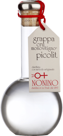 Grappa ist der älteste und traditionsreichste Branntwein Norditaliens. Dieser wird aus der Destillation der festen Bestandteile der Trauben, der Trester, gewonnen. Der Grappaproduzent Nonino aus Friaul wählte aus Trestern der Picolit Trauben, welche von dem Weinberg Nonino Buttrio in Friaul stammen. Die Fermentation erfolgte unter Luftabschluss, in Edelstahlbottichen, bei kontrollierter Temperatur. Unmittelbar danach wird destilliert, um das Entstehen von schädlicher sekundärer Fermentation zu verhindern. Beim Genuss dieses Grappas Monovitigno Picolit Cru, erwartet Sie ein aristokratisches Destillat. Rein und kristallin, in der Nase erinnert er an volle Bienenwaben, an Akazienblüten, an reife Quitten, an frischen Moscato und frisch gepflückte Feigen. Im Mund werden die Empfindungen der Nase bestätigt mit einem zusätzlichen Geschmack nach Brotkruste verstärkt. Ein langer Abgang ist bei diesem Grappa Monovitigno Picolit Cru garantiert. Diesen Grappa aus dem Friaul trinkt man am besten Schluck für Schluck nach dem Essen oder zu jeder Tageszeit, als Genuss! Vor dem Verkosten sollte das Destillat einige Minuten im Glas ruhen: durch die Sauerstoffaufnahme kommt der Geruch zur Geltung, die Harmonie Nase-Gaumen wird vollkommener.