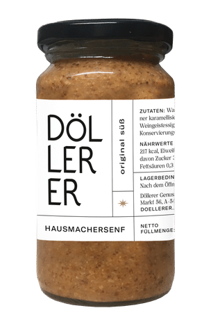 Und der Oscar für die beste Nebenrolle geht an – unseren Hausmachersenf! Ein Weißwurstsenf, wie er im Buche steht. Perfekt balanciert zwischen süß und sauer, mit kräftiger Karamellnote und elegantem