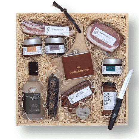 mit Döllerer-Schleife und Genuss-Packerl-Anhänger
