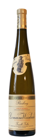 Die Domaine Weinbach produziert sein Generationen klassische Elsässer Weine mit einer zauberhaften Eleganz und Frische. Die Trauben für den Riesling Cuvée Theo wachsen auf mineralischen Böden und werden schonend gepresst und in gebrauchten Eichenfässern ausgebaut. Ein trockener Riesling der exklusiv von der Clos des Capucins kommt. Diese Weingärten widerfährt ein besonderer Schutz, da sie wie durch eine Wind-Mauer geschützt werden. Ein Weißwein der sich bereits in seiner Jugend zugänglich zeigt.