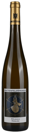 Die Reben des Mölsheim Riesling wurzeln im nackten Kalkfels, der hier nur von einer dünnen Schotterauflage bedeckt ist. Diese Steinigkeit und Kargheit drückt sich in der Mineralität des Rieslings perfekt aus: zurückgenommene Frucht, wenig Primäraromen, dafür die extrem filigranen Noten von Feuerstein und nördlichen Kräutern. Ein Riesling, der im Spiel mit der Säure und Mineralität dennoch ungeheuer elegant und fein ziseliert ist.